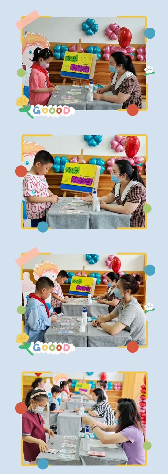 在“歡樂購(gòu)物街”活動(dòng)現(xiàn)場(chǎng),學(xué)生利用紙幣學(xué)具模擬購(gòu)物活動(dòng),既了解了貨幣的意義,又積累了使用貨幣的經(jīng)驗(yàn)。