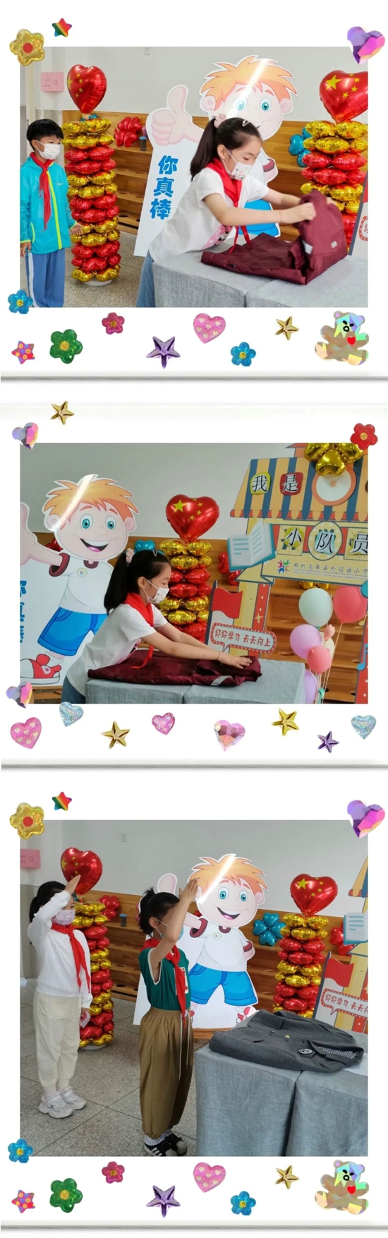 看這邊!小嫩芽們把校服疊得多整齊,整理好儀容儀表的他們,還用標(biāo)準(zhǔn)的隊(duì)禮表達(dá)自己對(duì)中國(guó)少年先鋒隊(duì)的無限崇敬。