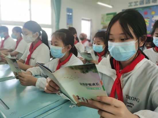 同學們認真學習普法手冊