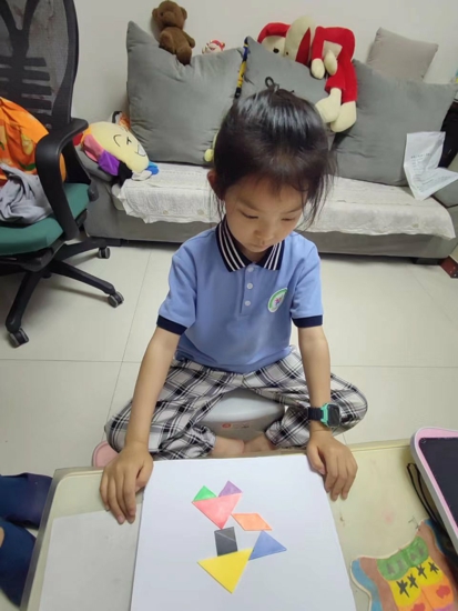 瞧,一年級的學(xué)生們多認真啊!七巧板在他們手中一會變成了小魚,一會變成了小房子......為你們小創(chuàng)意點贊!