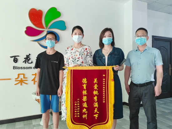 鄭州中原區(qū)百花藝術(shù)小學:用心育人暖人心 家長感恩送錦旗