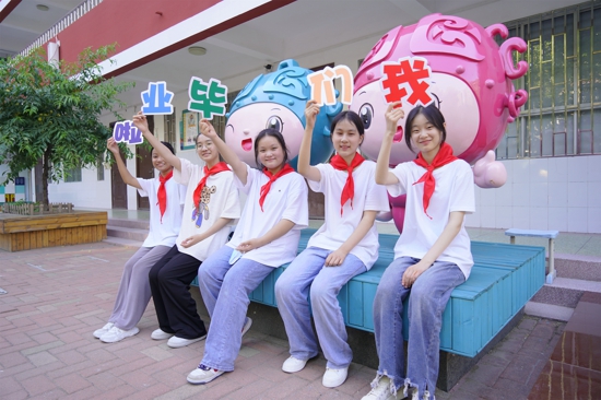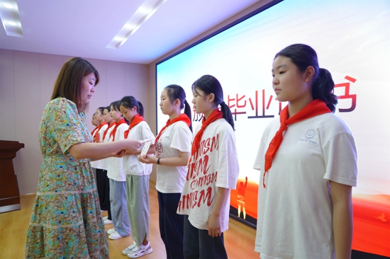 在第三篇章“向未來(lái)”環(huán)節(jié)中,校領(lǐng)導(dǎo)為六年級(jí)的畢業(yè)生頒發(fā)了畢業(yè)證,同時(shí)也把印有校徽標(biāo)志以及寫(xiě)有班主任老師殷切祝福語(yǔ)的紀(jì)念品送給了每一個(gè)孩子。“請(qǐng)母校相信,我們一定會(huì)為您爭(zhēng)光,請(qǐng)恩師放心,我們一定會(huì)成為祖國(guó)棟梁……”同學(xué)們鏗鏘有力的誓言也表達(dá)了他們的決心和勇氣。同時(shí),在歡樂(lè)愉快的氛圍中,孩子們也將精心準(zhǔn)備的歌舞節(jié)目進(jìn)行了展示,展現(xiàn)了新時(shí)代好少年昂揚(yáng)向上的青春風(fēng)采。最后,同學(xué)們把寄托著對(duì)母校最美好祝福的心愿牌掛在了紫藤樹(shù)下,也將帶著母校最美好的祝福再次出發(fā)。