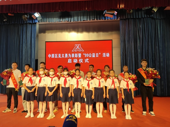 中原區(qū)百花藝術(shù)小學(xué)少先隊(duì)員代表參加中原區(qū)見(jiàn)義勇為表彰活動(dòng)