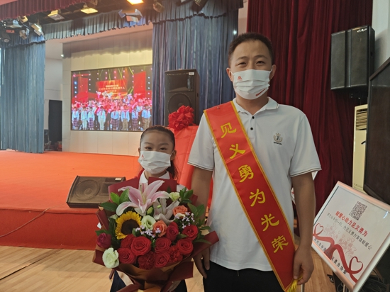 中新河南網(wǎng)8月7日電(吳勇強(qiáng)郭蘭蘭)小學(xué)階段是孩子人生觀、價(jià)值觀培養(yǎng)的關(guān)鍵時(shí)期。8月6日上午,鄭州市中原區(qū)百花藝術(shù)小學(xué)10名少先隊(duì)員參加了中原區(qū)見(jiàn)義勇為表彰暨“99公益日”活動(dòng)啟動(dòng)儀式,并作為全區(qū)少先隊(duì)員代表,向見(jiàn)義勇為表彰個(gè)人及家屬代表獻(xiàn)上鮮花;用莊嚴(yán)的隊(duì)禮,表達(dá)了全區(qū)少先隊(duì)員對(duì)見(jiàn)義勇為者的尊重與敬愛(ài)。