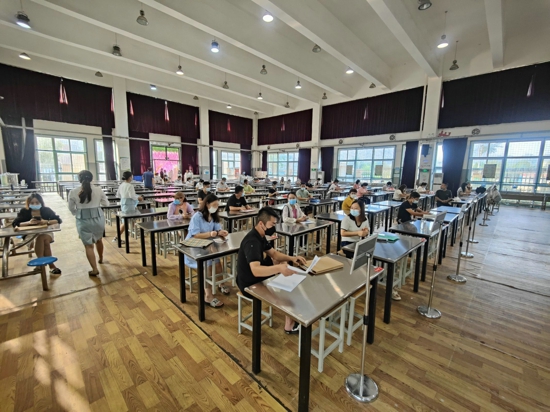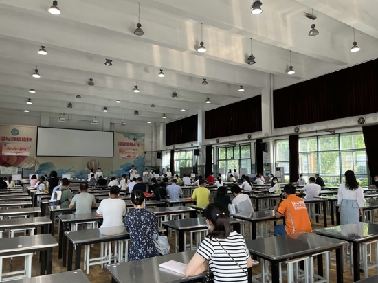 家長們進入校園后,先安排在室內(nèi)場館等候區(qū)有序就座分組發(fā)號。