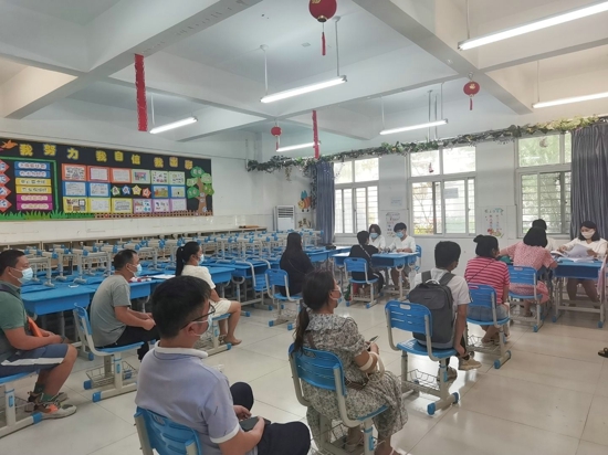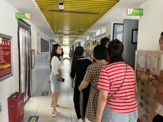 引導(dǎo)老師根據(jù)小區(qū)帶家長進入各組的審核區(qū),學(xué)校共安排9組老師進行材料審核,大大提高了審核的速度和準確度。