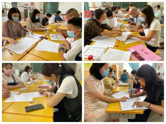 為避免家長等待,學校采用線上預約分區(qū)域、分時段報名的方式,進行人員合理分流,做到不扎堆、不擁擠,有條不紊。在炎熱的高溫天氣,學校為各位家長準備了清涼舒爽的等候室,提供茶水、?、口罩、紙巾等,播放學校宣傳視頻,增進家長對外小的了解。