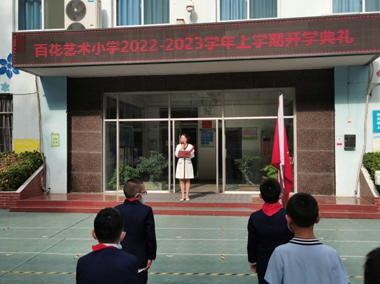 新學期、新征程、新舉措、新夢想,百花藝術小學師生將借著開學典禮的東風,弘壯志、樹新風,共同描繪一幅嶄新的教育藍圖,一起譜寫最動聽、最感人的生命樂章。