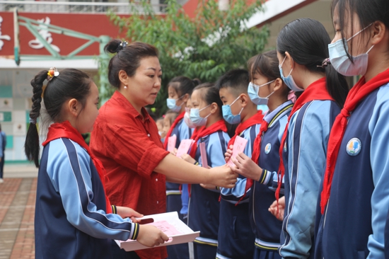 儀式現(xiàn)場(chǎng),該校副校長(zhǎng)遆亞娜也為獲得暑期實(shí)踐活動(dòng)標(biāo)兵和優(yōu)秀作業(yè)標(biāo)兵的少先隊(duì)員頒發(fā)了榮譽(yù)證書(shū)并勉勵(lì)全體隊(duì)員向他們學(xué)習(xí),讓優(yōu)秀成為一種習(xí)慣。