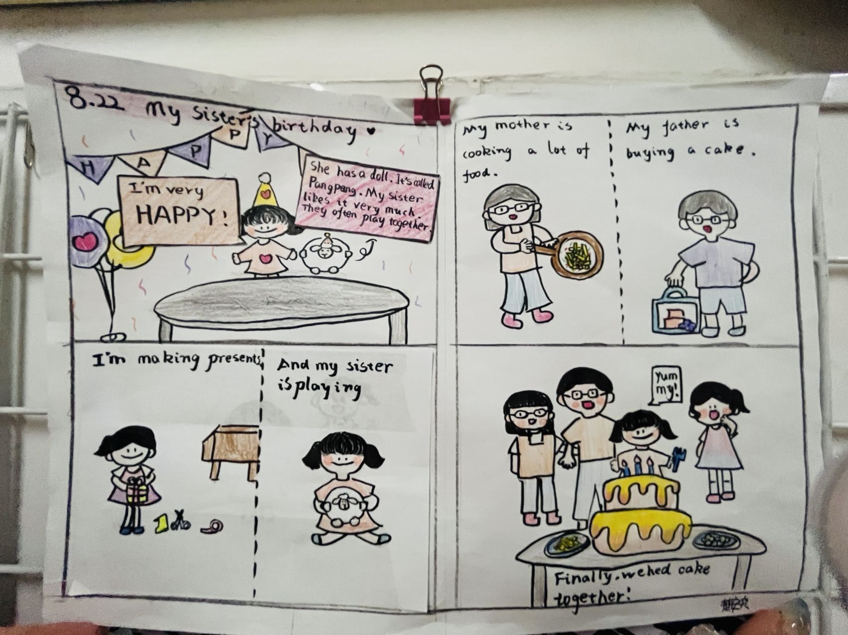 孩子們通過制作英語書、用英語記錄一天、英語時裝展等極大提高了孩子們學(xué)英語、用英語的興趣,孩子們的英語表達與應(yīng)用能力也得到了很大的提升。