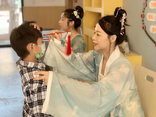 瞧!這里真熱鬧!在“朱砂啟智”場前,老師們用心為每一位小嫩芽的額頭正中點(diǎn)上紅“痣”,祝福小嫩芽們在外小這片沃土上,能夠茁壯成長,早日成為有責(zé)任、能自主、善創(chuàng)新的中國出彩少年!