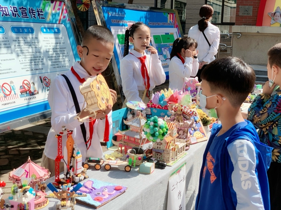 學(xué)榜樣、展才華。游園中展出了社團(tuán)優(yōu)秀作品,有色彩斑斕的美術(shù)作品、精美的手工作品、筆酣墨飽的書法作品,圖文并茂、精彩紛呈。榜樣的力量是無窮的,小嫩芽們由衷地發(fā)出贊嘆:“哇!太漂亮了!”“字寫得太工整啦!我要向他學(xué)習(xí)!”