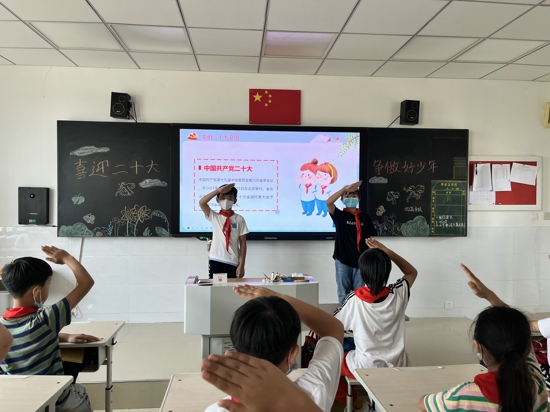 中新網(wǎng)河南9月6日電(吳勇強(qiáng))為深入學(xué)習(xí)宣傳慶祝中國(guó)共產(chǎn)主義青年團(tuán)成立100周年大會(huì)上的重要講話精神,團(tuán)結(jié)、教育、引領(lǐng)廣大少先隊(duì)員聽(tīng)黨話、跟黨走,以優(yōu)異成績(jī)獻(xiàn)禮黨的二十大勝利召開(kāi),2022年9月2日,鄭州市管城回族區(qū)紫東路小學(xué)開(kāi)展了“喜迎二十大爭(zhēng)做好隊(duì)員”主題教育活動(dòng)。