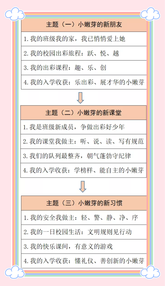 “我的安全我做主,我的物品我整理,我的事情我安排,我的班級我的家……”安全作伴、習慣受益。日常行為,禮貌相隨;文明游戲、快樂無邊。小嫩芽們親身體驗規(guī)則的重要性,創(chuàng)意有意義的課間游戲,落實具體行動。小嫩芽們懂禮儀、善創(chuàng)新,爭做擁有好習慣的出彩少年。