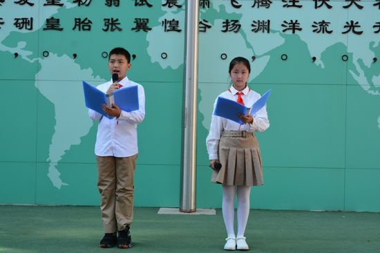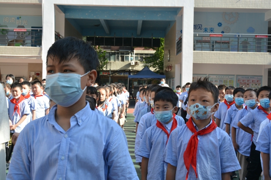 上午八點(diǎn)半,開學(xué)典禮在工人第一新村小學(xué)的操場上正式拉開帷幕。全體師生莊嚴(yán)肅穆地在國旗下舉行了新學(xué)期第一次升旗儀式,大家一起奏唱國歌,少先隊(duì)員敬獻(xiàn)隊(duì)禮,隨著國歌的響起,五星紅旗冉冉升起隨風(fēng)飄揚(yáng),同學(xué)們的內(nèi)心格外激動(dòng)。