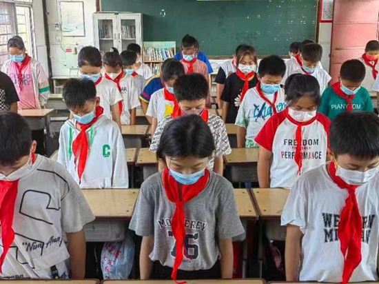 隊(duì)會課上,各中隊(duì)隊(duì)員通過觀看視頻和輔導(dǎo)員深入淺出的講解,再現(xiàn)了“九一八事變”的真實(shí)場景,一張張槍林彈雨的歷史照片,一個個血雨腥風(fēng)的真實(shí)鏡頭,令每一位同學(xué)表情凝重,悲痛不已。在國難當(dāng)頭、民族存亡之際,一個個抗日英雄拋頭顱、灑熱血,踐行著對祖國“一寸山河,一寸血!”的承諾。戰(zhàn)士們不畏強(qiáng)敵,英勇獻(xiàn)身的抗日精神深深激勵著同學(xué)們的愛國心。之后全體隊(duì)員原地肅立默哀三分鐘,深切緬懷在戰(zhàn)爭中犧牲的革命先烈,加倍珍惜眼前的生活。最后,各中隊(duì)輔導(dǎo)員向隊(duì)員們發(fā)出號召:一定要銘記歷史,勿忘國恥,發(fā)奮圖強(qiáng),努力學(xué)習(xí)科學(xué)文化知識,將來為國爭光。