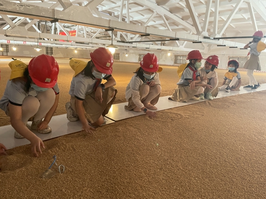 裝備齊全,進(jìn)糧庫。帶好安全帽,放好隨身物品,在講解員和帶隊(duì)老師的保護(hù)下,同學(xué)們爬到糧庫內(nèi)部進(jìn)行參觀體驗(yàn)。糧倉內(nèi)部,工作人員把木板鋪在糧食頂部上以便人員活動(dòng)。得知腳下是高達(dá)六米的麥子,同學(xué)們無比震撼于糧倉的巨大。在工作人員的講解中,同學(xué)們也了解到了糧食的保存也需要精準(zhǔn)控制溫度、濕度等因素。參觀體驗(yàn)活動(dòng)后,同學(xué)們紛紛表示要做厲行節(jié)約、愛糧節(jié)糧的倡導(dǎo)者和示范者,要做勤儉節(jié)約新風(fēng)尚的傳播者和實(shí)踐者。