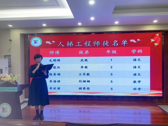 儀式第一項(xiàng):教務(wù)處孫麗萍主任宣讀了“人梯工程”師徒的名單。