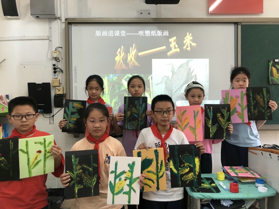 據(jù)悉在活動(dòng)前,美術(shù)老師做了充分的準(zhǔn)備。查閱相關(guān)資料,制作課程PPT,完成范畫(huà)。低年級(jí)美術(shù)老師向?qū)W生介紹了“秋牛圖”——把二開(kāi)紅紙或黃紙印上全年農(nóng)歷節(jié)氣,再印上農(nóng)夫拉牛耕田的圖樣,這被人們稱為“秋牛圖”。秋天到來(lái)的時(shí)候,一些民間能言善辯、能歌善舞的”秋官“,會(huì)挨家送秋牛圖。這些隨口而出的跟農(nóng)耕有關(guān)的吉祥話雖然即興發(fā)揮,但句句有韻動(dòng)聽(tīng),俗稱“說(shuō)秋”。每到一家更是即景生情,見(jiàn)啥說(shuō)啥,說(shuō)得主人喜笑顏開(kāi),賞錢換牛圖。學(xué)生們聽(tīng)的津津有味。中高年級(jí)的學(xué)生則通過(guò)視頻、圖片了解秋季特有的果實(shí)石榴和玉米,并知道了吹塑紙版畫(huà)的制作方法。隨后,各班學(xué)生手拿畫(huà)筆,認(rèn)真作畫(huà),一幅幅飽含秋意的作品誕生了;顒(dòng)后,學(xué)生暢談自己的感受,“秋天除了有美景還有秋牛圖和這么多美味的食物,我更加喜歡秋天了。”四一班王啟行說(shuō)道。