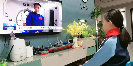 鄭州市管城區(qū)南學(xué)街小學(xué)組織學(xué)生觀看第三次“天宮課堂”