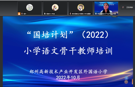 金秋十月,飽含收獲的欣喜,孕育成長的契機。10月13日,鄭州高新區(qū)外國語小學(xué)迎來了2022年“國培計劃”小學(xué)語文骨干教師專題培訓(xùn)活動。本次活動因疫情在線上舉行,大家相約云端,觀摩研討,共同探索以學(xué)生為中心的教學(xué)評一體化課堂。