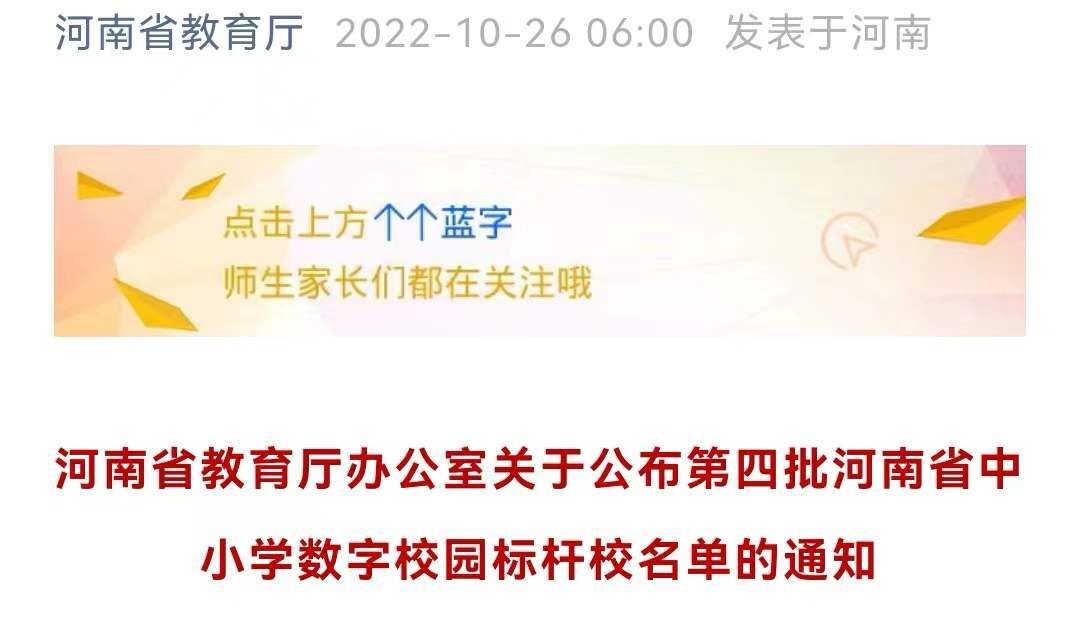 喜報(bào)!鄭州高新區(qū)外國語小學(xué)榮獲第四批河南省中小學(xué)數(shù)字校園標(biāo)桿校