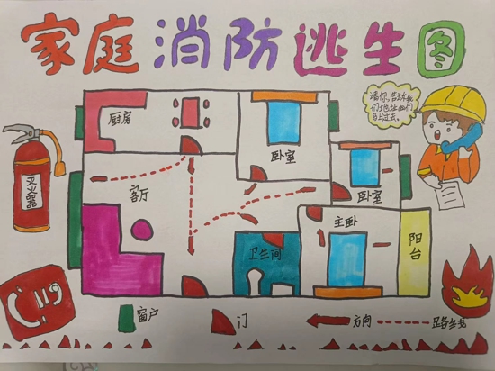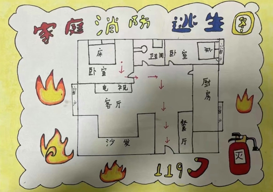 火災(zāi)中的逃生爭(zhēng)分奪秒,如果家里突發(fā)火災(zāi),如何迅速逃離火場(chǎng)?擁有一份熟記于心的家庭逃生路線,顯得至關(guān)重要。為進(jìn)一步培養(yǎng)學(xué)生的安全意識(shí),引導(dǎo)學(xué)生掌握逃生技能,學(xué)校布置了這份特殊的作業(yè):畫一張家庭消防逃生路線圖。