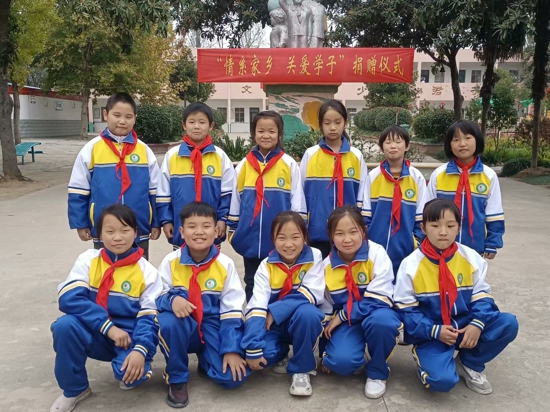 南陽市新野縣五星宋灣愛心人士為全校學(xué)生捐贈校服