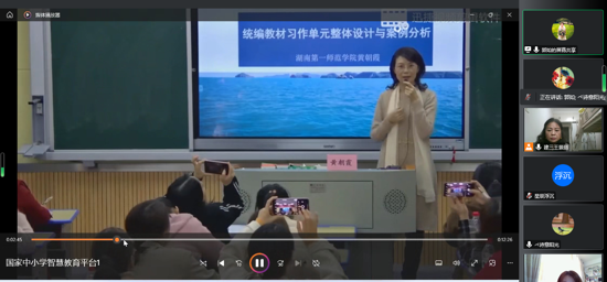 然后,共同觀摩學(xué)習(xí)了黃朝霞教授關(guān)于《統(tǒng)編教材習(xí)作單元整體教學(xué)設(shè)計(jì)與案例分析》的講座,黃教授從習(xí)作單元的結(jié)構(gòu)為切入點(diǎn),讓老師們了解了習(xí)作單元整體教學(xué)的必要性,對于資源的整合方法、流程等有了清晰的認(rèn)識,也打開了每一位老師單元教學(xué)的思路。