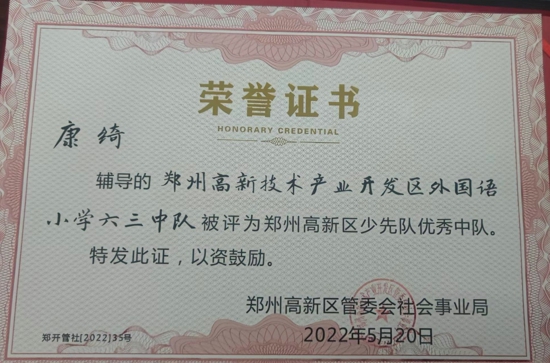 正因如此,她的班級(jí)班風(fēng)正、學(xué)風(fēng)濃、陽(yáng)光向上,在學(xué)校各項(xiàng)評(píng)比中總能脫穎而出,還曾獲得“高新區(qū)優(yōu)秀中隊(duì)”、班級(jí)文化評(píng)比一等獎(jiǎng)等各項(xiàng)榮譽(yù)。除此之外,她個(gè)人也多次榮獲優(yōu)秀班主任、優(yōu)秀教師的榮譽(yù)稱(chēng)號(hào)。