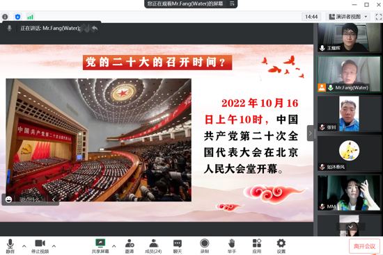 黨課上,黨支部副書記方楠用黨的二十大報告概述開篇明義,以黨的二十大報告要點(diǎn)為主線、重點(diǎn)對二十大精神的豐富內(nèi)涵和核心要義等方面進(jìn)行了詳細(xì)解讀,特別著重從“一個主題”“一項(xiàng)中心任務(wù)”“一場深刻革命”“一項(xiàng)優(yōu)先戰(zhàn)略”“一體化保護(hù)治理”等方面,結(jié)合實(shí)際工作對二十大報告進(jìn)行了深入淺出的解讀,為大家上了一堂生動而深刻的專題黨課。黨課引發(fā)了黨員教師的強(qiáng)烈共鳴,大家一致認(rèn)為黨課主題鮮明、內(nèi)涵豐富,具有很強(qiáng)的思想性、指導(dǎo)性、針對性,聽后很受啟發(fā),為下一步凝聚思想共識、匯聚奮進(jìn)力量注入了新的力量。