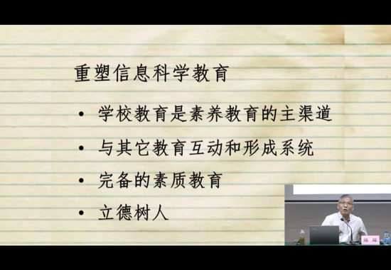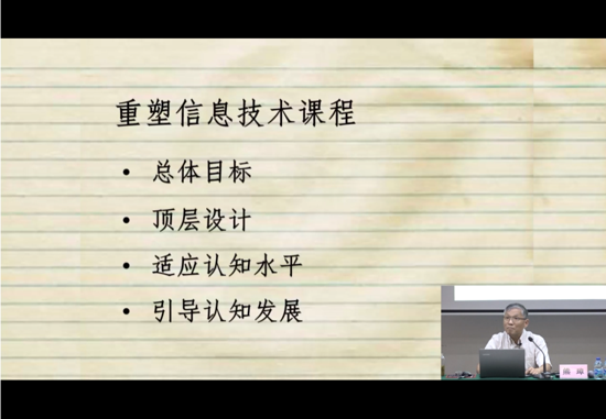熊璋教授首先對如何把握信息科技教育的科學(xué)本質(zhì)和育人價值問題進(jìn)行了闡述,明確指出,對于信息技術(shù)課程,大家普遍更加關(guān)注學(xué)生對技能與工具的運(yùn)用,而忽略了信息技術(shù)對于學(xué)生人生發(fā)展的重大意義。