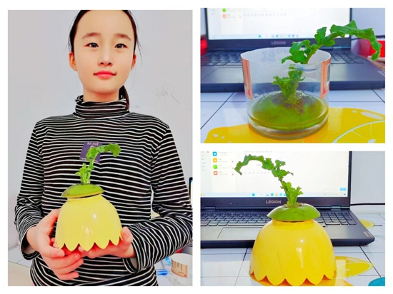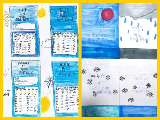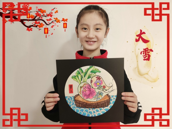 活動中,孩子們在老師的指導(dǎo)下、家長的幫助下積極開展了豐富多樣的活動。語文學(xué)科中,孩子們在老師的帶領(lǐng)下朗誦了與大雪節(jié)氣有關(guān)的詩詞并制作了一幅幅精美的詩配畫,一起跟隨詩人的腳步探索古詩中的大雪;美術(shù)學(xué)科中,老師給孩子們講述大雪節(jié)氣的民俗藝術(shù)知識并帶領(lǐng)大家一起創(chuàng)作“雪房子”“國風(fēng)蘿卜”“臘梅花”等富有創(chuàng)作性的美術(shù)作品,讓孩子們在充分了解節(jié)氣知識的同時豐富美術(shù)創(chuàng)作體驗;科學(xué)學(xué)科則開展了“觀察水培蘿卜”“感受南北氣溫差異”“制作小雪人”等科學(xué)實踐活動,極大地調(diào)動了孩子們的參與積極性;音樂老師帶領(lǐng)孩子們學(xué)習(xí)節(jié)氣歌、表演手勢舞,感受節(jié)氣的別樣韻味;還有勞動課堂上,各班紛紛開展了燉羊肉、炸蘿卜丸子、巧做蓮藕等豐富多彩的勞動實踐活動,引導(dǎo)孩子們對大雪節(jié)氣的食俗有了更深一步的了解。