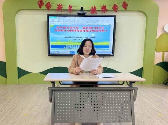 校長毛金霞在會議上做了新學(xué)期致辭,向全體教師傳達(dá)了中原區(qū)教育局黨組書記、局長吳曉昊在中原區(qū)2023年教育工作會議上的講話精神,帶領(lǐng)教師們學(xué)習(xí)了《鄭州市中原區(qū)教育局2023年工作要點(diǎn)》,了解中原區(qū)教育發(fā)展動向,并回顧了2022年的工作要點(diǎn),充分肯定了2022年工作成績,同時(shí)對2023年工作進(jìn)行了詳細(xì)部署。
