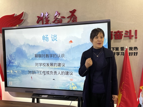中新河南網(wǎng)3月6日電(吳勇強(qiáng))為進(jìn)一步聚焦學(xué)校發(fā)展熱點(diǎn),傾聽(tīng)老師們的心聲,搭建學(xué)校管理團(tuán)隊(duì)與教師間雙向溝通的交流平臺(tái),2023年3月2日上午,金水區(qū)工人第一新村小學(xué)召開(kāi)45歲以上教師會(huì)。學(xué)校班子成員和45歲以上的教職工圍坐在一起,就“做幸福的寶藏教師”展開(kāi)交流。會(huì)議由王利主任主持。