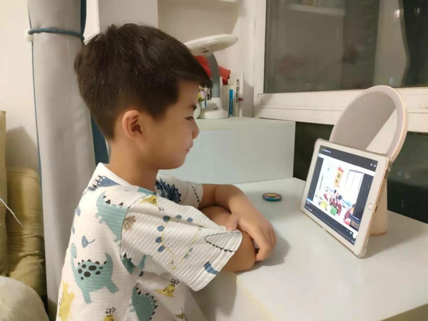 一一班鄭睿喆在認(rèn)真觀看線上家長會(huì)