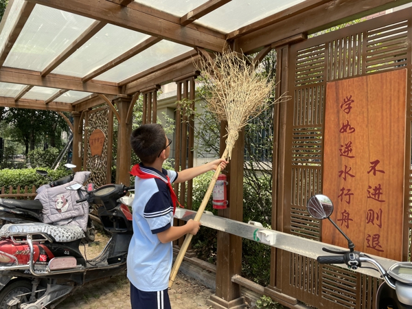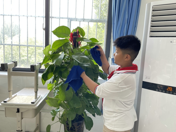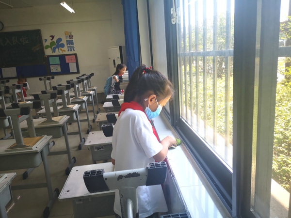 在中隊輔導(dǎo)員的帶領(lǐng)下,少先隊員紛紛拿著掃帚、拖把、抹布、水桶等勞動工具,到劃定的衛(wèi)生區(qū)域里打掃衛(wèi)生。大家本著“團(tuán)結(jié)協(xié)作、愛校如家”的精神,相互配合,不怕臟、不怕累——打掃教室、擦洗窗戶、整理桌凳、清除死角……雖然少先隊員汗流浹背,但樂在其中,表現(xiàn)了良好的精神風(fēng)貌。大掃除活動現(xiàn)場氣氛十分活躍,大家忙碌的身影,成為校園最美的流動風(fēng)景。經(jīng)過大家的共同努力,校容校貌煥然一新,到處都透出清爽與潔凈。