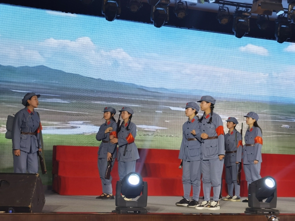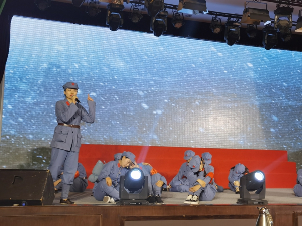 情景劇《風(fēng)雪長(zhǎng)征路》展現(xiàn)了紅軍長(zhǎng)征踏過雄關(guān)、沖破險(xiǎn)阻的過程,展現(xiàn)了英雄大無畏的長(zhǎng)征精神。一幕幕感人肺腑的劇情,一位位教師的真情詮釋,讓現(xiàn)場(chǎng)觀眾熱淚盈眶。長(zhǎng)征故事感染人,長(zhǎng)征精神振奮人。老師們經(jīng)過一段時(shí)間的編排、表演和練習(xí),深切體會(huì)到紅軍戰(zhàn)士在長(zhǎng)征途中所體現(xiàn)的百折不撓、豪邁樂觀的精神。