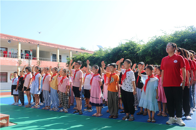 在伊川縣葛寨鎮(zhèn)沙園小學(xué),鄭州電力高等?茖W(xué)校暑期社會實(shí)踐團(tuán)開展了“學(xué)黨史 強(qiáng)信念 跟黨走”主題升旗儀式、愛國愛黨主題班會。