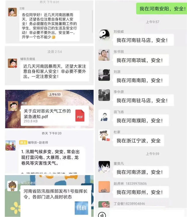 此次降雨范圍廣,全省各地不同程度遭遇極端強降雨。為提高師生安全防范意識,學校各部門(單位)第一時間通過微博、微信、短視頻等平臺,加強對廣大師生員工的宣傳教育,幫助師生充分認識極端惡劣天氣造成的危害,認真做好防大汛的思想準備,謹慎出行、積極應(yīng)對,認真做好個人防護。針對分布在省內(nèi)外的5000余名實習學生,河南交院第一時間組織實習指導(dǎo)教師,克服通訊不暢困難,進行全面的聯(lián)系摸排,迅速確定學生位置狀態(tài)、加強安全防護教育,確保實習學生人身安全。