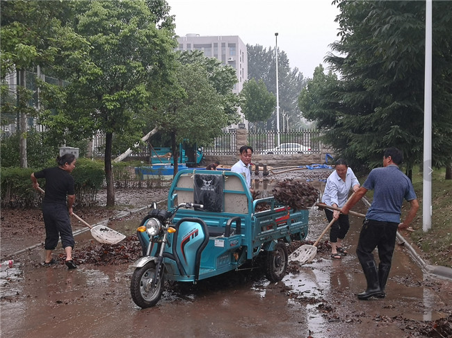 面對(duì)突如其來(lái)的重大汛情,鄭州電力高等?茖W(xué)校迅速啟動(dòng)防汛應(yīng)急響應(yīng)。主要領(lǐng)導(dǎo)坐鎮(zhèn)指揮,連夜展開應(yīng)急處置,統(tǒng)籌協(xié)調(diào)各項(xiàng)工作;后勤服務(wù)中心對(duì)全校處于低洼地帶的道路與管道進(jìn)行檢查,落實(shí)現(xiàn)場(chǎng)排水及清淤、相關(guān)設(shè)備斷電等措施,防止設(shè)備漏電以及人身傷害事故;同時(shí)加強(qiáng)供電設(shè)施的巡視、監(jiān)測(cè),重點(diǎn)開展配電房?jī)?nèi)澇及線路受災(zāi)隱患排除。