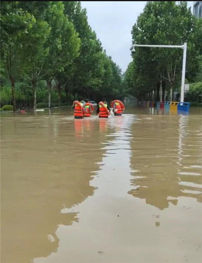 接到消息后,學(xué)校保衛(wèi)處迅速組織力量前往解救被困人員。當(dāng)營(yíng)救車輛行駛至鄭開大道與楊橋大道交叉口時(shí),積水已經(jīng)達(dá)到1米以上。營(yíng)救小隊(duì)當(dāng)即決定冒險(xiǎn)涉水前行,解救被困人員。
