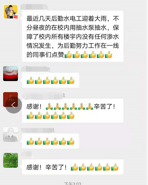 最終在應(yīng)急救援隊(duì)和學(xué)校救援隊(duì)的努力下,順利將被困教職工全部救出。體育部教師駕駛槳板也參與救援。學(xué)校保衛(wèi)處同事還和藍(lán)天救援隊(duì)的隊(duì)員一起,及時(shí)解救了不少被困群眾。