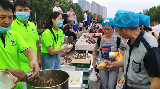 自7月20日18時至7月23日18時,在鄭州汛期黃金救援關(guān)鍵72小時內(nèi),該炊事神器為象湖區(qū)域,包括河南交通學(xué)院、象湖社區(qū)、鄭州阜外醫(yī)院等受困群體以及各方救援機構(gòu)提供了近兩萬人次的“熱食”供應(yīng),品種有面條、米飯、饅頭、燴菜等。