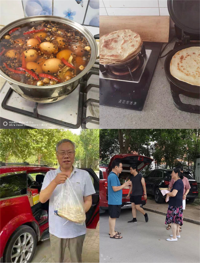 當(dāng)?shù)弥仍筷、受?zāi)群眾需要油餅、煮雞蛋等食物時,該校教職工聞“訊”而動,“豫”愛同行。退休干部王黨親、退休教師趙亮等紛紛在家自己動手烙起了一摞摞的油餅;文法學(xué)院孫瓊閣、馬克思主義學(xué)院周英潔、工商管理學(xué)院李利曉、外國語學(xué)院張靜等在家煮起了茶葉蛋;為了預(yù)防天熱食物變質(zhì),物流與電商學(xué)院梁金萍老師買下該校英才校區(qū)丹尼斯店的全部的獨立包裝鹵雞蛋,人事處王勇老師購買了變蛋;退休干部劉德著、趙金祥,金融與會計學(xué)院趙桂珍等捐獻(xiàn)了牛肉、咸鴨蛋、紅棗、日用藥物等物品支援救災(zāi)一線。他們用自己的實際行動傳遞愛,彰顯河南牧業(yè)經(jīng)濟(jì)學(xué)院精神。