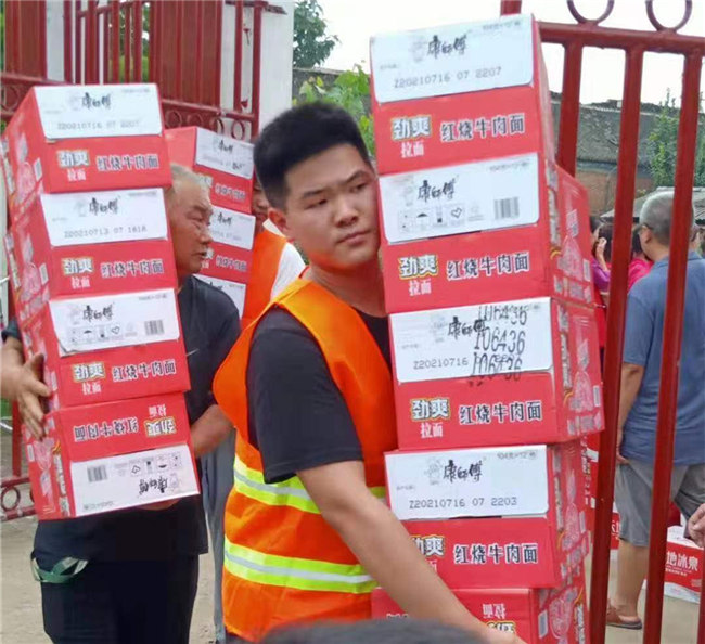 藝術(shù)學(xué)院2020級音樂表演專升本3班的張運凱第一時間加入了河南防汛志愿者的微信群。7月22日,他聯(lián)系到了一位從航空港區(qū)去市區(qū)送物資的志愿者,搭順風(fēng)車把面包送到鄭大五附院一號樓13樓兒童康復(fù)醫(yī)院。當(dāng)天晚上9點又一批物資運到,包括上千箱火腿腸,還有兒童尿不濕、奶粉等等,張運凱一直沒有離開,繼續(xù)幫忙運送物資。他和志愿者們工作至深夜12點搬完所有物資并分發(fā)給每位病人。家在龍湖鎮(zhèn)的張運凱此時已無法回家,只得在醫(yī)院住了一晚。張運凱說,他知道自己能力有限,但也想盡其所能。看到社會上有那么多愛心人士捐款捐物,內(nèi)心非常很感動。一方有難,八方支援。有這種精神,相信任何困難都無法把我們打倒,只會讓我們越來越團(tuán)結(jié),越來越強(qiáng)大!
