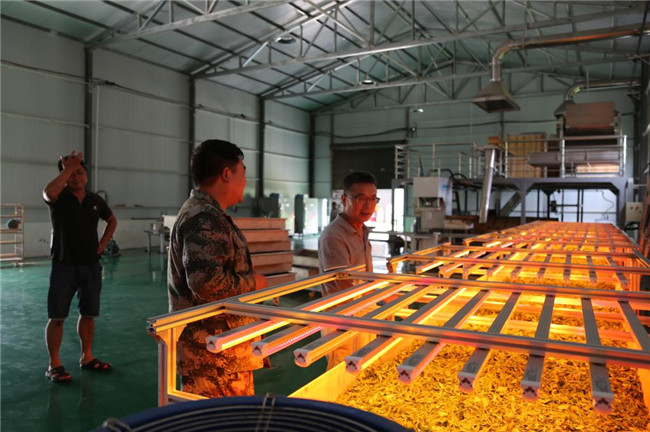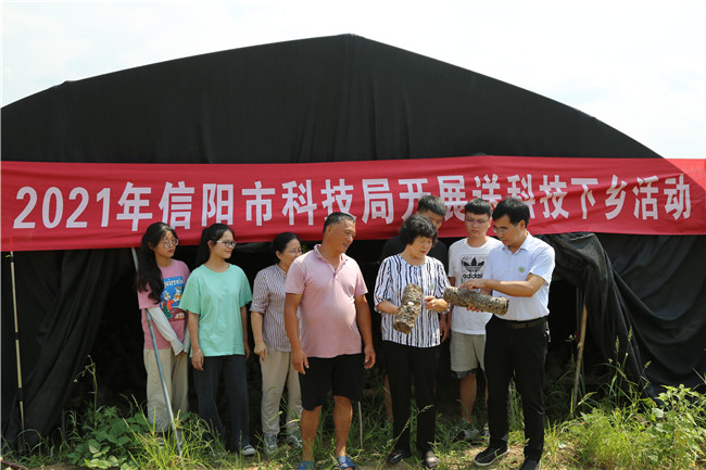 7月29日,信陽(yáng)農(nóng)林學(xué)院食藥真菌科技服務(wù)團(tuán)團(tuán)長(zhǎng)王德芝教授帶領(lǐng)團(tuán)隊(duì)赴羅山杜堰食用菌合作社開(kāi)展救災(zāi)復(fù)產(chǎn)科技服務(wù)活動(dòng)。“目前頭茬菇采摘已經(jīng)結(jié)束,菌菇袋處于越夏管理的關(guān)鍵時(shí)期,香菇菌袋越夏重點(diǎn)要做好控溫工作,建議采取雙層遮陽(yáng)網(wǎng)、微噴等措施盡量使菇棚溫度不超過(guò)30 ℃,同時(shí)要加強(qiáng)菇棚通風(fēng),使香菇菌袋順利越夏。”在羅山杜堰食用菌合作社,信陽(yáng)農(nóng)林學(xué)院食藥用菌專(zhuān)家、河南省科技特派員王德芝教授向合作社負(fù)責(zé)人詳細(xì)了解了香菇的種植情況,并結(jié)合大棚菌袋情況,給合作社負(fù)責(zé)人講解了香菇菌袋越夏管理要點(diǎn),暴雨過(guò)后要做好病菌、害蟲(chóng)等病蟲(chóng)害防治工作。