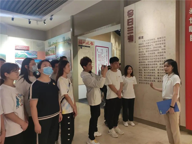 場(chǎng)館前“請(qǐng)黨放心,強(qiáng)國(guó)有我”的實(shí)踐團(tuán)口號(hào),鏗鏘有力,擲地有聲。