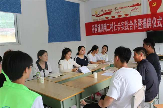座談會(huì)后,實(shí)踐團(tuán)與谷營(yíng)鎮(zhèn)四明堂二村開展大學(xué)生社會(huì)實(shí)踐基地掛牌儀式。共建大學(xué)生社會(huì)實(shí)踐基地,目的是依托學(xué)校的豐富教育、科技和人才資源長(zhǎng)期助力谷營(yíng)鎮(zhèn)四明堂二村鄉(xiāng)村振興。四明堂二村實(shí)踐基地的建立是學(xué)校扎實(shí)開展社會(huì)實(shí)踐活動(dòng)的一個(gè)縮影。