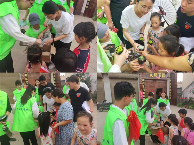 實(shí)踐團(tuán)結(jié)合當(dāng)?shù)氐那闆r同村民探討如何探索一條生態(tài)優(yōu)先、綠色發(fā)展的新路子,創(chuàng)新發(fā)展理念,提升生態(tài)價(jià)值。為當(dāng)?shù)匦∨笥寻l(fā)放綠色植物,與村民們一起學(xué)習(xí)綠色環(huán)保和生態(tài)應(yīng)用知識(shí),倡議垃圾分類、購物自備購物袋,讓綠色生活成為一抹流行色。
